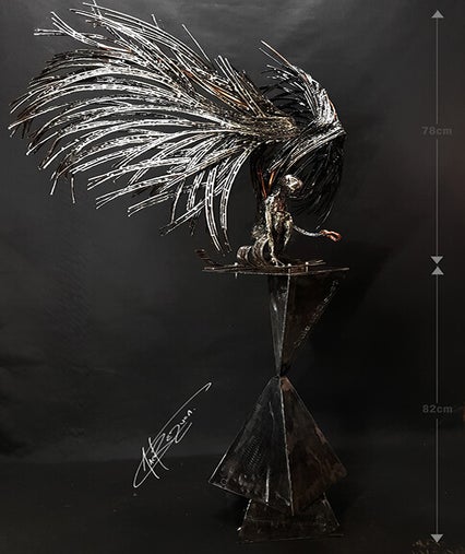 OTHER SUPPORT FOR THE FURTHER MODELING OF STEEL BYASSEMBLY.Pure creations, drawn by princes "GOLDEN PROPORTIONS" who want to beexhibited in their own creations, ... thread by thread singularly attached for aconceptual whole.Dimensions:H-1600mm / L-450 mm / wingspan: 900mm /approximate weight: 20 kg